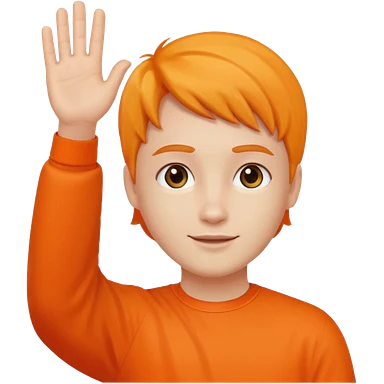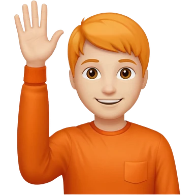 say hi with arm and hand. clothes with orange emoji