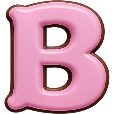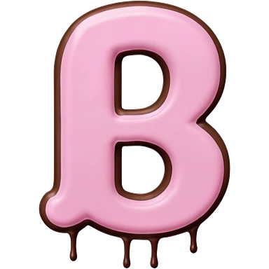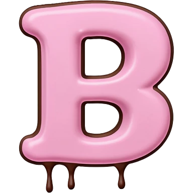 “Single pink bubble letter B, white outline, bottom dipped in chocolate with pink frosting drizzle, kawaii style, glossy, soft shading, clean outline, transparent background, Discord emoji size” emoji