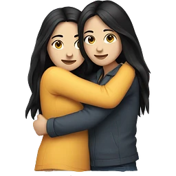 A lesbian couple with white skin and long black hair hugging intimately, and romantically. emoji