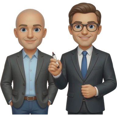 there should be two person one is bold and other must be standing with skin marker and trying to do front line for bold person.This guy must be like a director or manager not like similar a doctor emoji