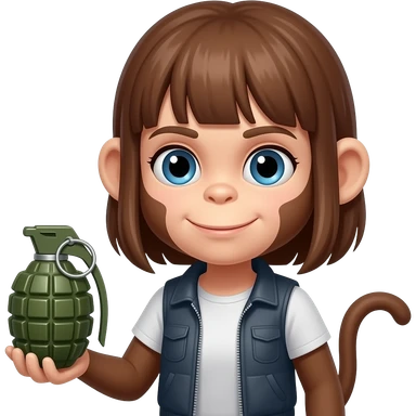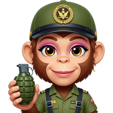 Обезьянка-девочка с ярким макияжем шляпкой, ботексом, и гранатой emoji