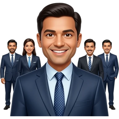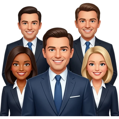 Grupo de personas con traje sonriendo a la canara emoji