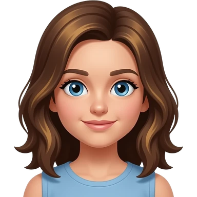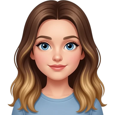 White girl long brown hair with highlights blue eyes emoji