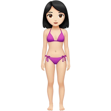 Women full body with bikini on black hair and brown eyes and very pretty emoji