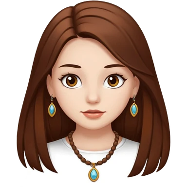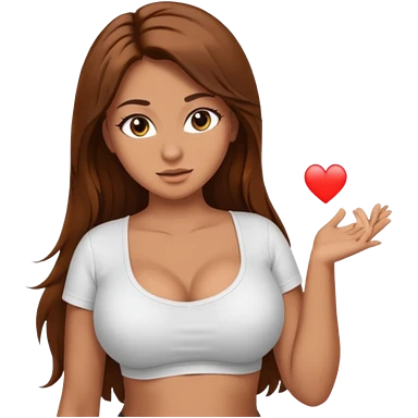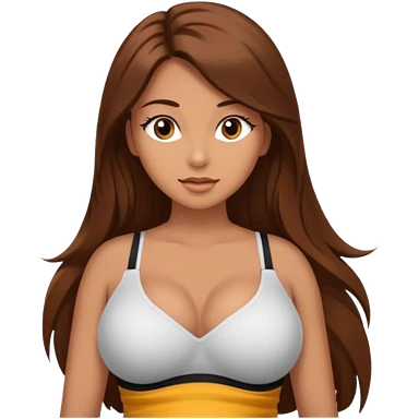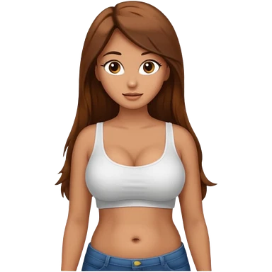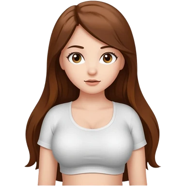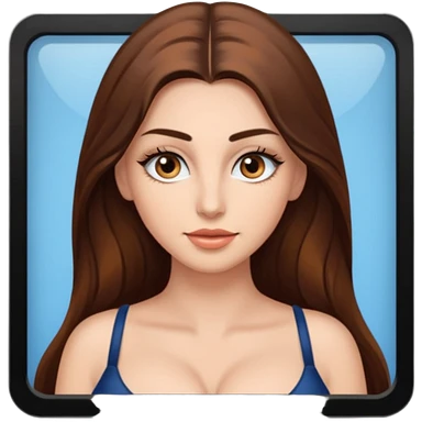 девушка с длинными коричневыми волосами, белой кожей, густыми ресницами и карими глазами с сиськами в экране emoji