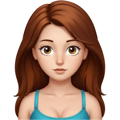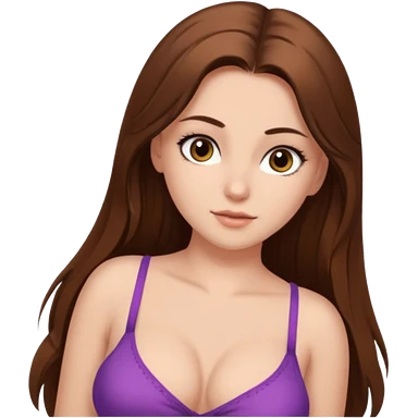 девушка с длинными коричневыми волосами, белой кожей, густыми ресницами и карими глазами с сиськами голыми emoji