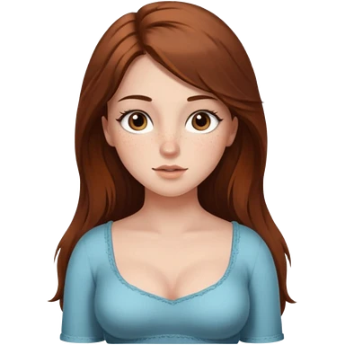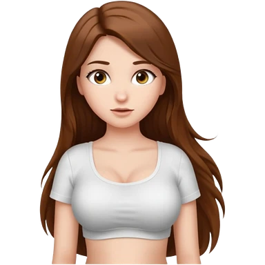 девушка с длинными коричневыми волосами, белой кожей, густыми ресницами и карими глазами с сиськами emoji