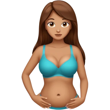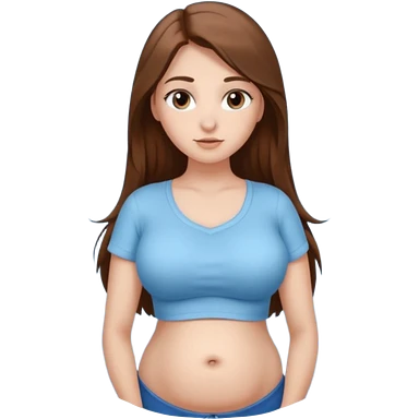 девушка с длинными коричневыми волосами и густыми ресницами и пузиком и сиськами, фото по пояс emoji