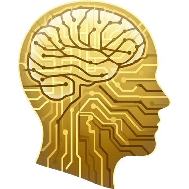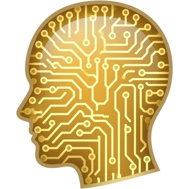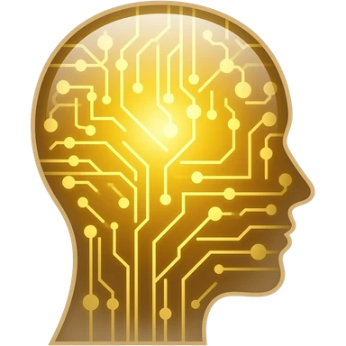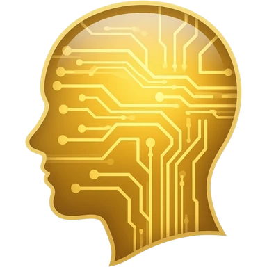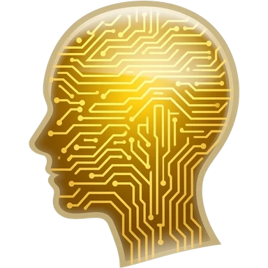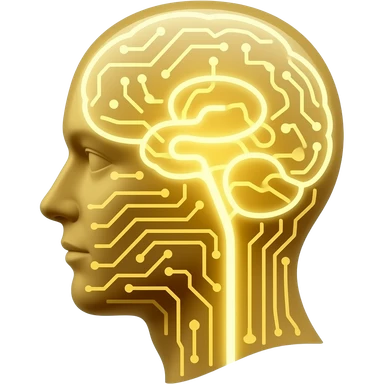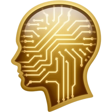 glowing gold human head silhouette with a transparent effect,-filled-with-interconnected-circuit-lines-and-neural-nodes,-symbolizing-artificial-intelligence emoji