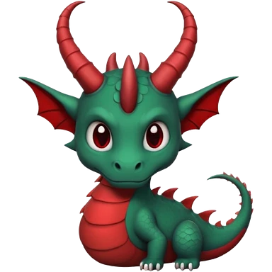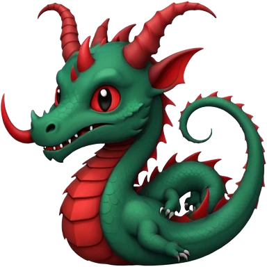 cute-but-dark dragon emoji, Burtonesque gothic illustration, muted palette with single accent (blood red or emerald), spiral horns, simple silhouette readable at 72x72, hand-drawn texture, minimal details, round sticker composition, --ar 1:1 emoji