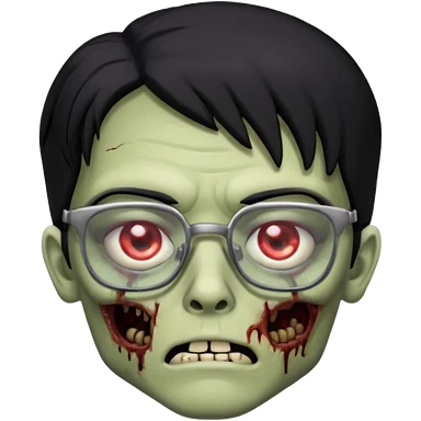 zumbie de cabelo preto,olhos pretos e oculos pequeno emoji