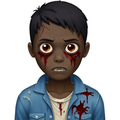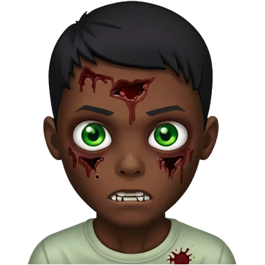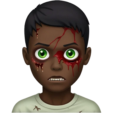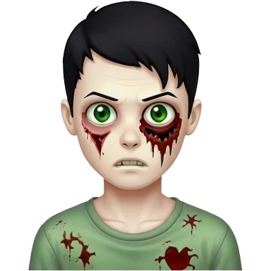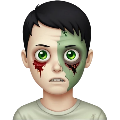 garoto zumbi com cabelo preto e ferimento no rosto emoji