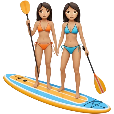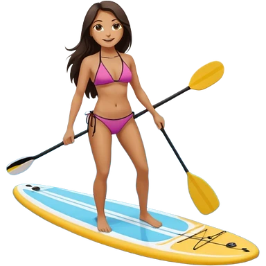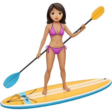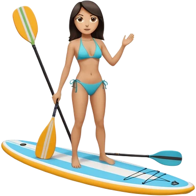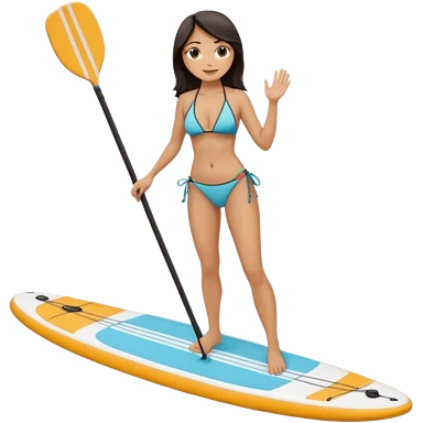 Dark haired white women on Standing paddle board in bikini emoji