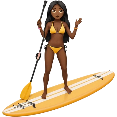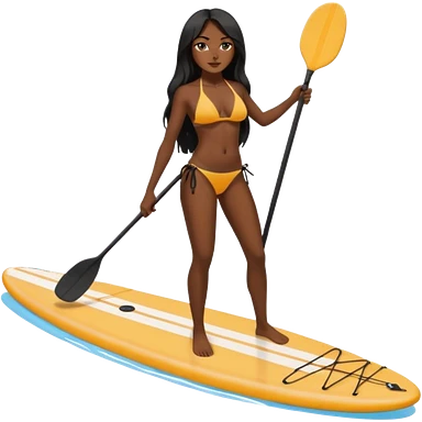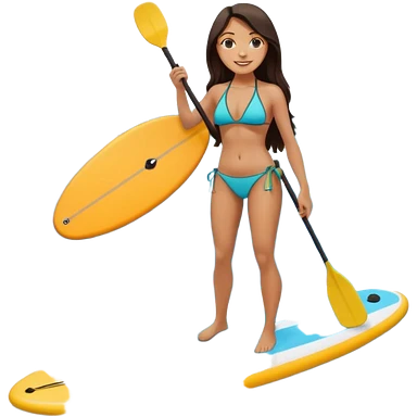 white women with long dark hair on Standing paddle board in bikini emoji