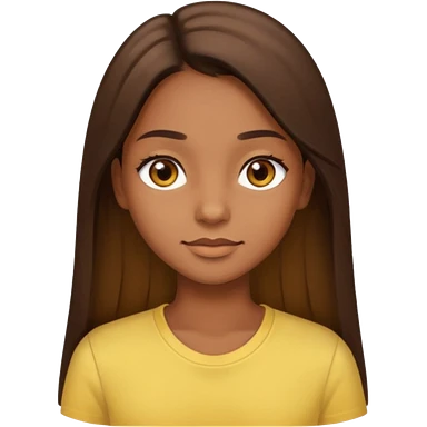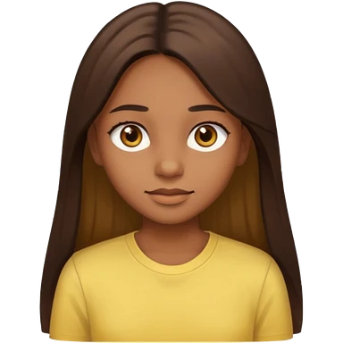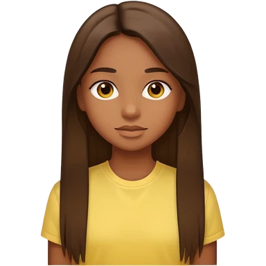 a brown skin girl with brown straight long hair with brown eyes with a light yellow shirt emoji