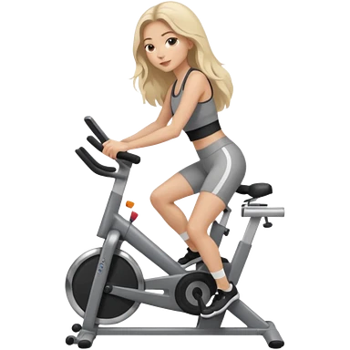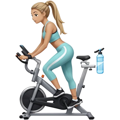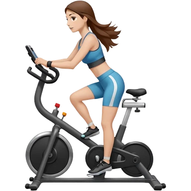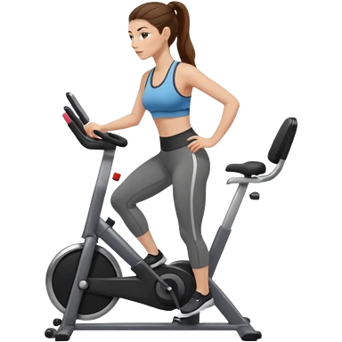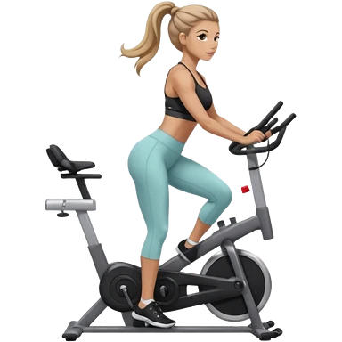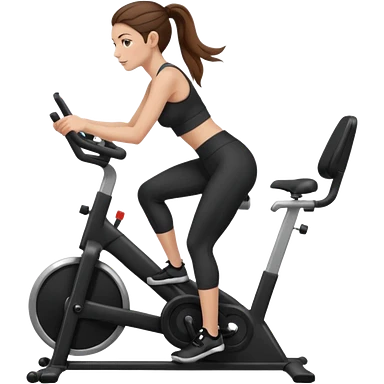 woman with long hair tied up in ankle-length leggings on a stationary bike emoji