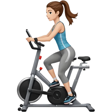woman with long brown hair pulled back, fair skin, wearing ankle-length leggings on a stationary bike emoji