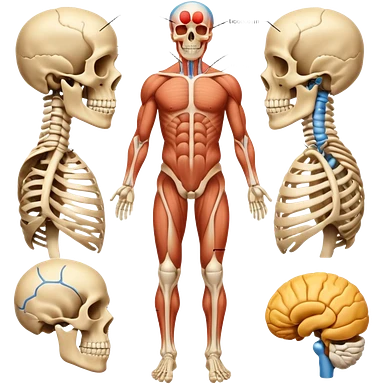 Un emojis para uso medico: Un hombro, una cadera, una rodilla, un pie, un brazo con un codo y mano, una espalda y un cuello emoji
