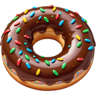 A glossy chocolate-glazed donut emoji with colorful sprinkles, rendered in a bright, clean, 3D cartoon style. Soft lighting, smooth texture, vibrant colors, and a playful, appetizing look. emoji
