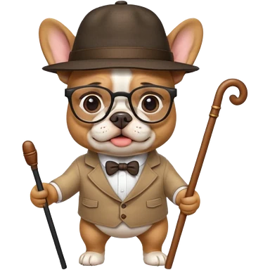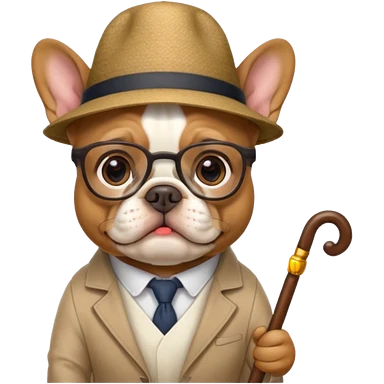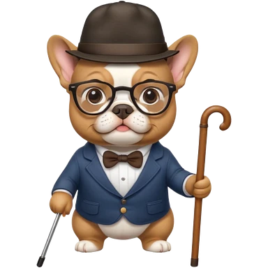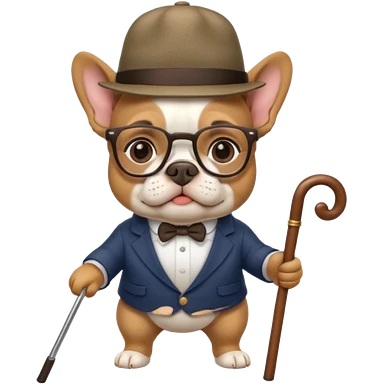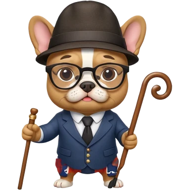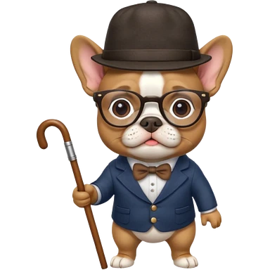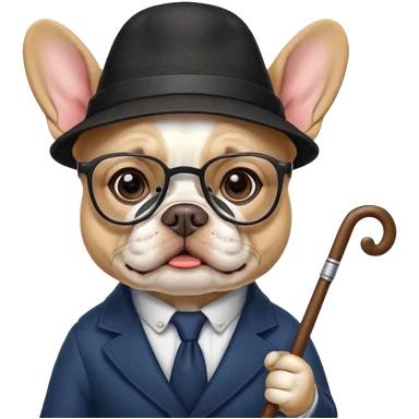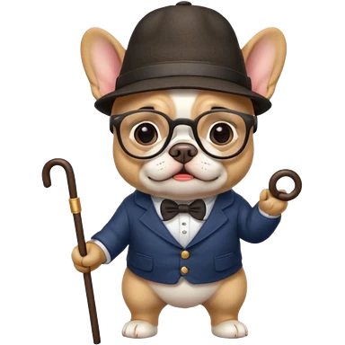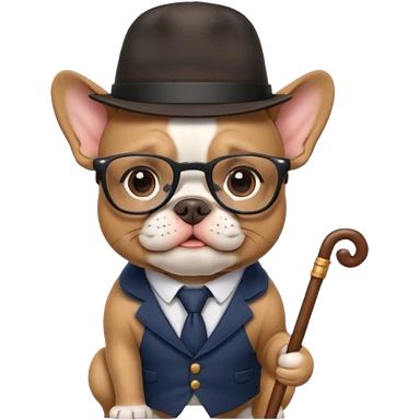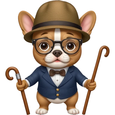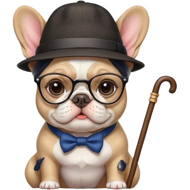 сделай французкого бульдога в очках и шляпе и с тросточкой emoji