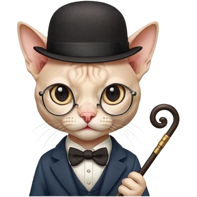 сделай кота сфинка в очках и шляпе и с тросточкой emoji