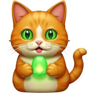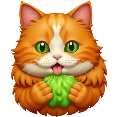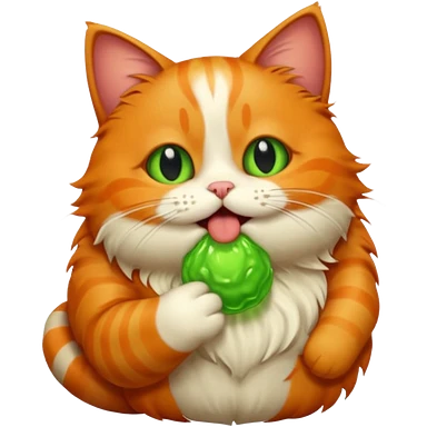 A ginger cat burps green burps emoji