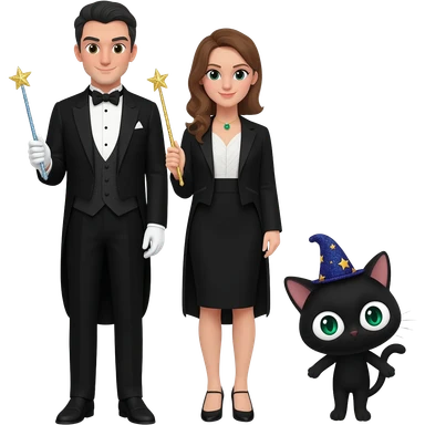 magician couple and their pet cat emoji