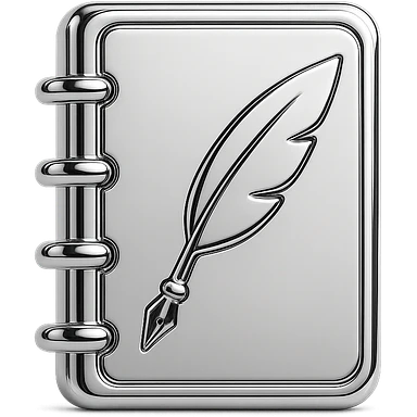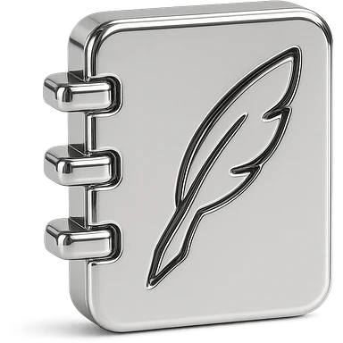Minimal flat icon of an elegant notebook with a subtle pen or quill emoji
