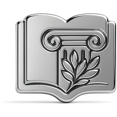 Minimal flat icon representing stoic philosophy and journaling: an open notebook combined with a classical column or laurel symbol, representing wisdom, reflection and inner discipline emoji