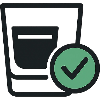 Minimal flat icon of a jagerbomb glass with a check mark, symbolizing allowed social pleasure emoji