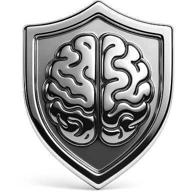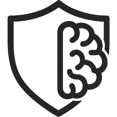 Minimal flat icon of a shield combined with a human brain, symbolizing self-control and mental discipline. emoji