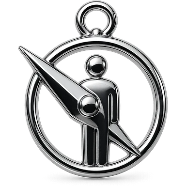 Minimal flat icon of a compass merged with a lone human figure, symbolizing autonomy and exploration. emoji
