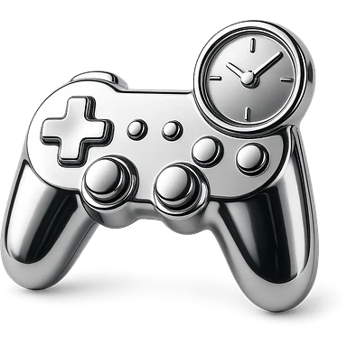 Minimal flat icon of a game controller combined with a small clock, symbolizing controlled entertainment emoji