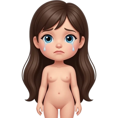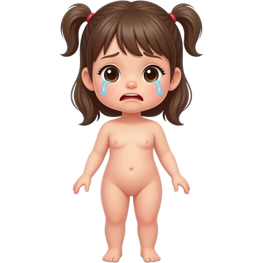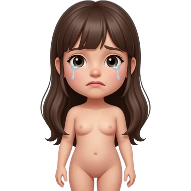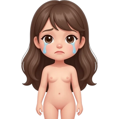 Full body, small little nude girl, flat chest, crying thin hips and ass, thin pussy, middle age long hair emoji