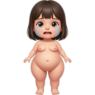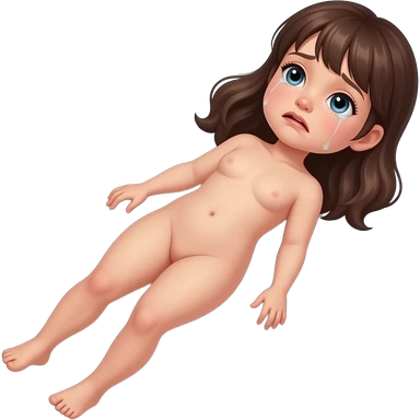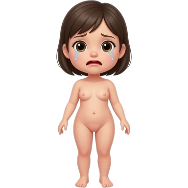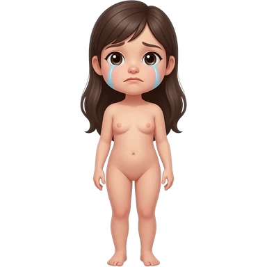 Full body, small little nude girl, flat chest, crying thin hips and ass, thin pussy emoji