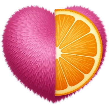 create a half orange and half hot pink fluffy heart realistic emoji emoji
