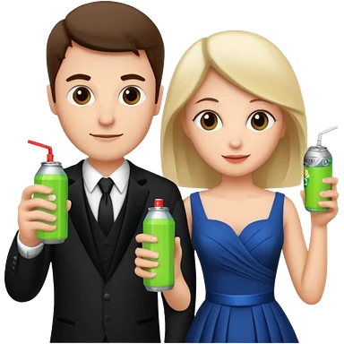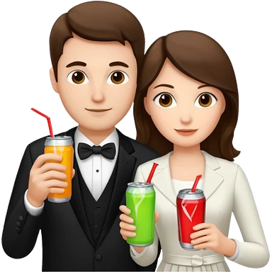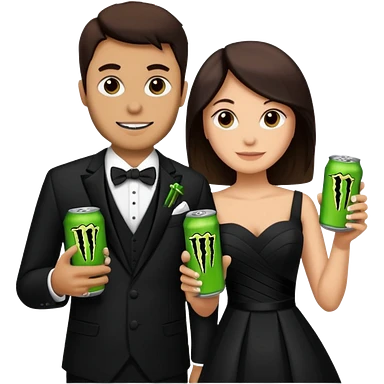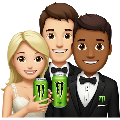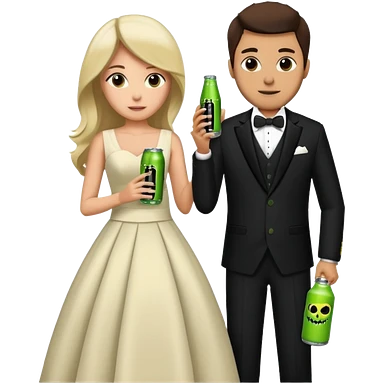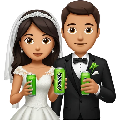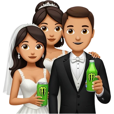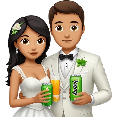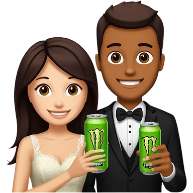 mexican wife in white wedding dress and white husband in wedding suit holding monster energy drink emoji