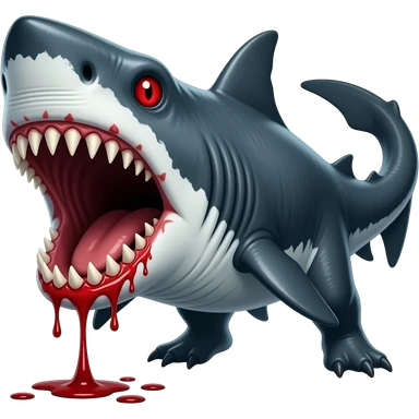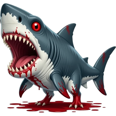 Horror looking megladon with red eyes and big and blood on it with red colored legs and red megladon covered with blood with white eyes emoji