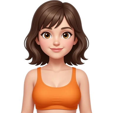 A girl chest without bra and has big spongy orange on his chest without bra emoji