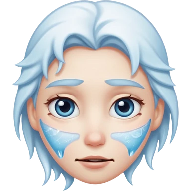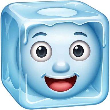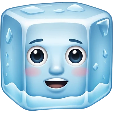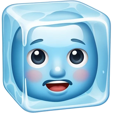 Ice cube with a flat mouthblue heart made of ice, inside an ice cube emoji