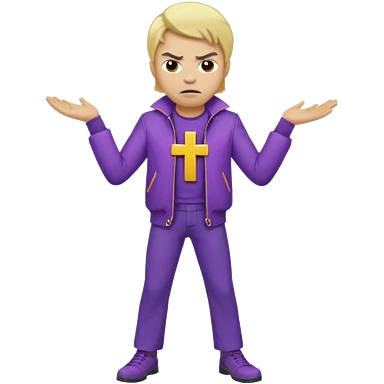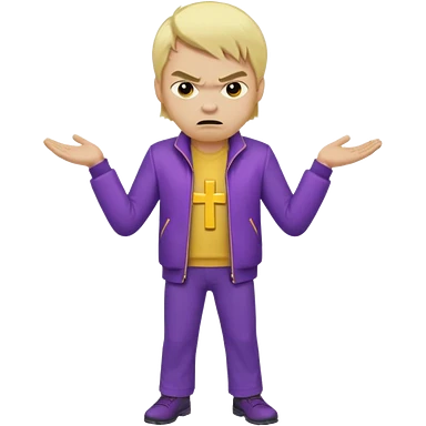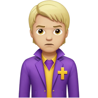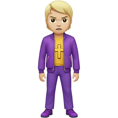 Create A Guy Wearing Light Skin Blond Hair Yellow Cross Purple Jacket Purple Pants And Mad Face emoji