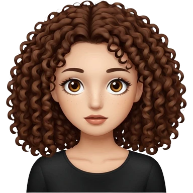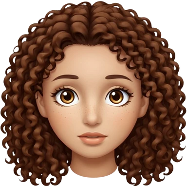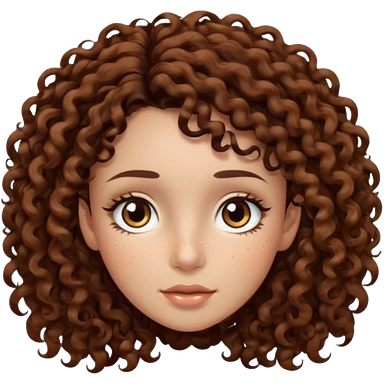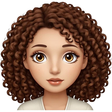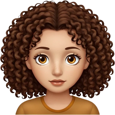 dark brown curly hair with dark brown eyes and long lashes with freckle and light brown skin emoji
