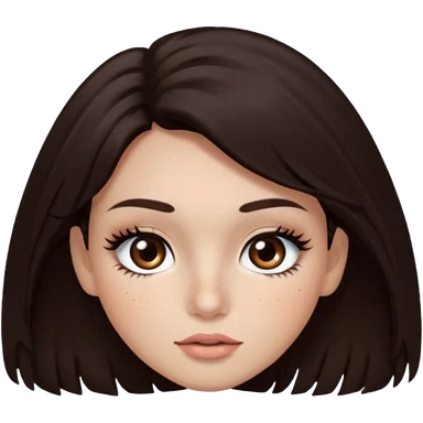 straight hair dark brown eyes and long lashes with and light skin emoji