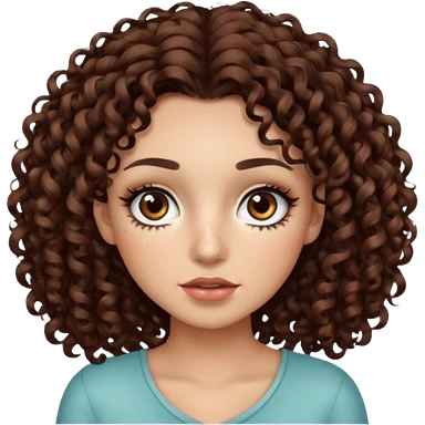 curly hair dark brown eyes and long lashes with and light skin emoji