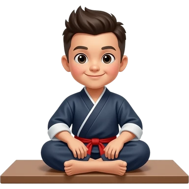Kungfu kicsitting on counter, one leg folded up, relaxed casual posture, slight smile emoji