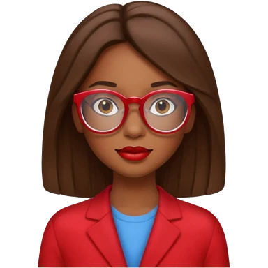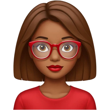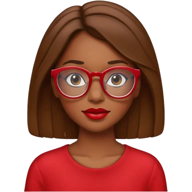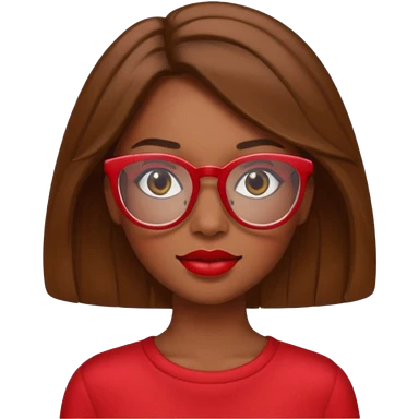 It creates a girl with brown skin, hair a little below her shoulders, just a little, pretty clear glasses, wearing red clothes and red lipstick. emoji