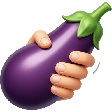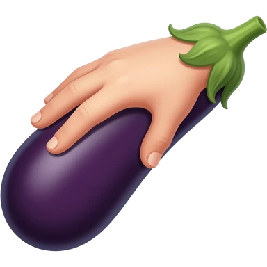 A hand grippin the eggplant from the side while the hand moving up and down on the eggplant emoji