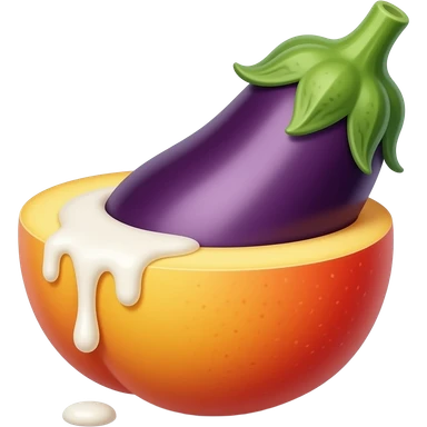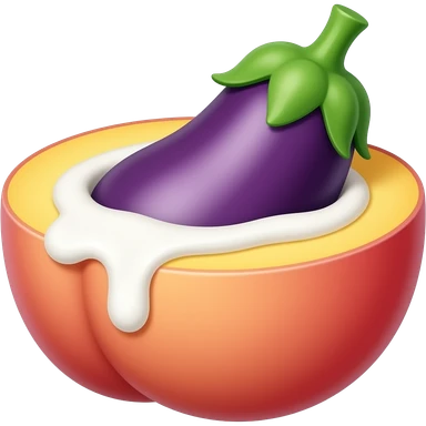 Okay so i want an emoji with a eggplant inside of a peach with cream comin out of the peach where the egg plant is inserted front view emoji