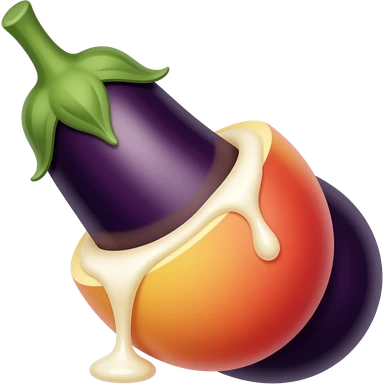 Okay so i want an emoji with a eggplant inside of a peach with cream comin out of the peach where the egg plant is inserted top view emoji