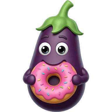 eggplant with eyes eating a pink donut emoji